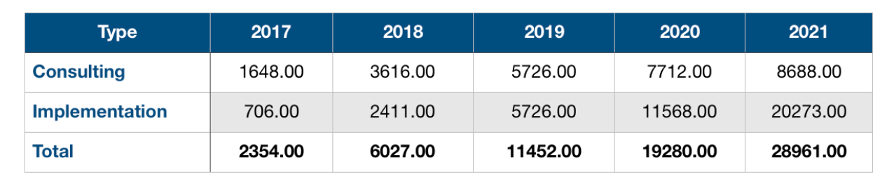 We have tried to calculate the total amount of SAP consultants that working in SAP AMS, this analysis was build based on Gartner reports and include statistics only for market leaders: